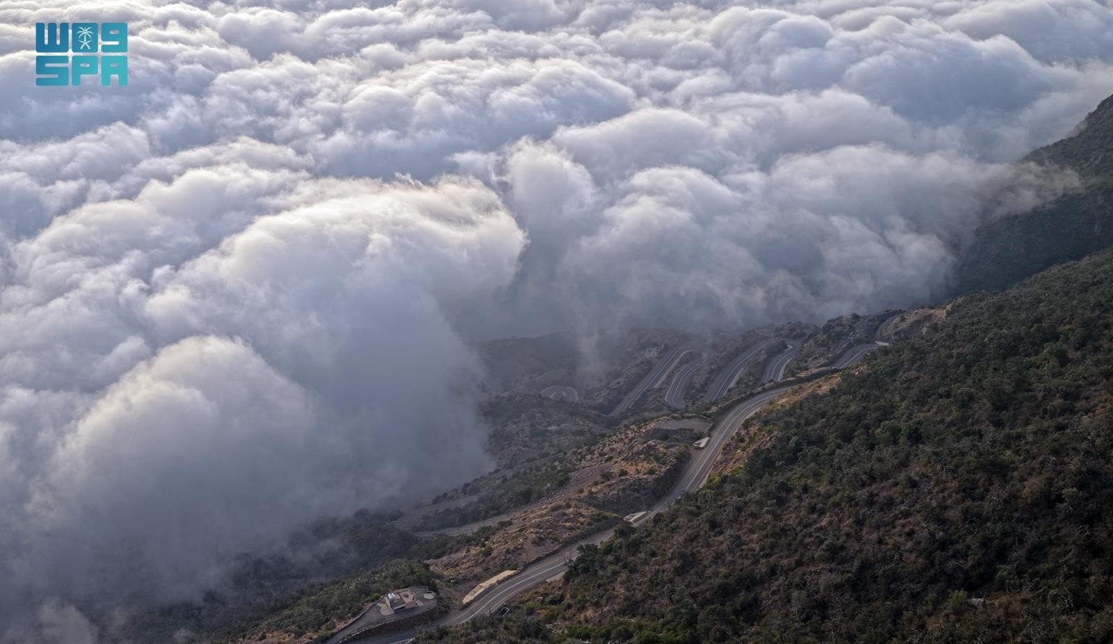 ووثقت "واس" امتداد السحب المنخفضة على السفوح والمرتفعات، وهي تحتضن غابات العرعر الشهيرة، وتوشح الأشجار المعمّرة بالندى والرطوبة، في لوحة طبيعية شتوية تضفي على المكان سحرًا خاصًا.