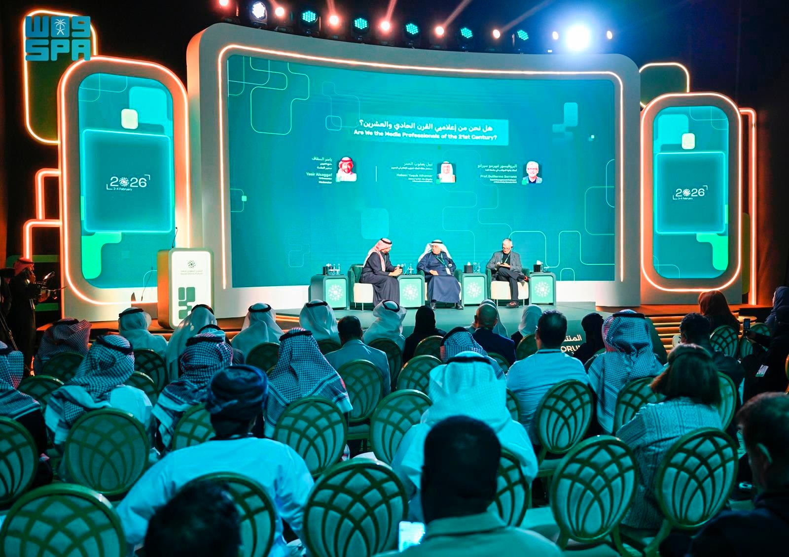 الرياض (واس) على مسرح القادة ضمن أعمال النسخة الخامسة من المنتدى السعودي للإعلام، عُقدت جلسة حوارية اليوم، بعنوان "هل نحن من إعلاميي القرن الحادي والعشرين؟"، ناقشت واقع الإعلام المعاصر والتحولات المتسارعة التي يشهدها.