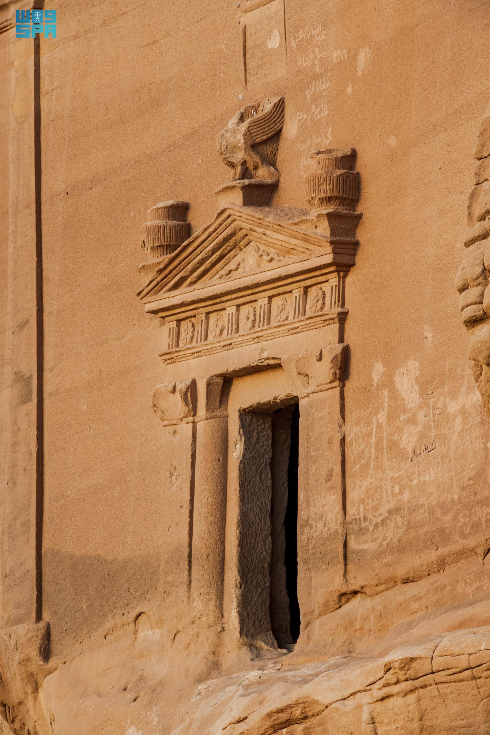 وبحسب الهيئة الملكية لمحافظة العُلا يضمّ الموقع نحو 141 مدفنًا صخريًا، تزين 93 منها واجهات منحوتة بزخارف هندسية دقيقة، تتميّز بواجهاتها المزخرفة ونقوشها ذات الدلالات الدينية والاجتماعية التي توثق أنماط الحياة السائدة آنذاك، وهو ما يبرز المكانة المعمارية والفنية التي بلغتها هذه الحضارة في نحت الصخور وتصميم الواجهات.
