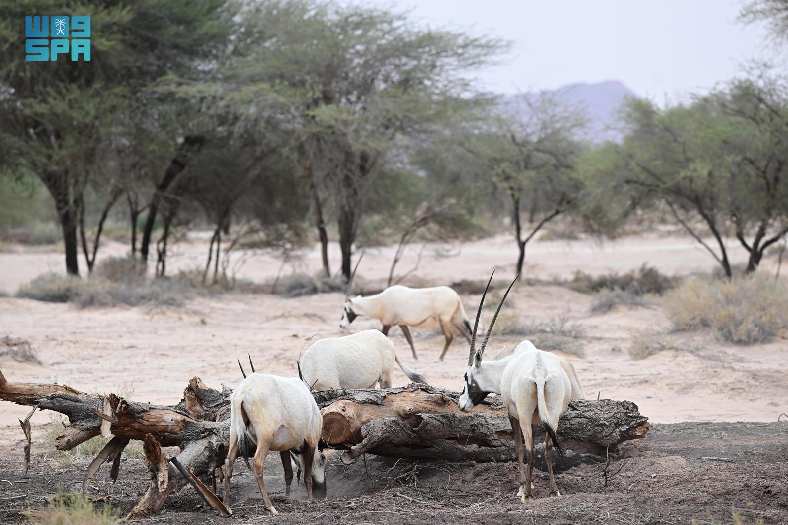 وتحتضن المنطقة عددًا من الأنواع الفطرية المحلية والمعاد توطينها، من أبرزها الوعل العربي، والمها العربي، وغزال الريم، والغزال العربي، إضافة إلى النعام أحمر الرقبة، فيما يُقدّر إجمالي أعداد الحيوانات بنحو 250 حيوانًا، في دلالة على تنامي الجهود المبذولة لتعزيز التوازن البيئي في الموقع.